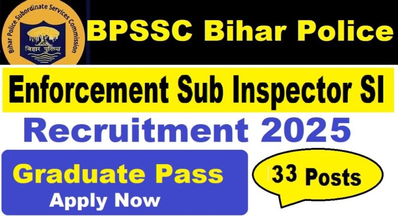 Bihar Police Subordinate Organizations Commission BPSSC, The take note for the induction of Bihar Police Authorization Sub Analyst in Transport Division Enrollment has released on the functionary point. This instatement is for 33 positions. The Bihar BPSSC operation shape has started on May 30, 2025, and campaigners can apply until June 30, 2025. The slightest age is 21 A long time & the most extraordinary age is 40 a long time as of Applaudable 01, 2025. campaigners must check the add up to focuses of intrigued for the Bihar Police Authorization Sub Inspector SI Enrollment 2025 given below.